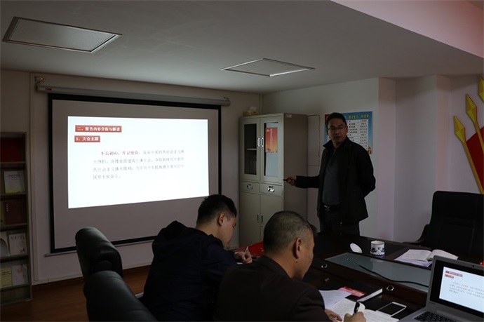 發(fā)布時(shí)間:2017-12-26 作者:文/葉瀟圖 義潔/鄒帥 來源:本站原創(chuàng) 審核:羅海蘭12月26日,實(shí)業(yè)公司黨支部開展以“聚焦十九大、暢談新變化、助力新發(fā)展”為主題的黨日活動(dòng)。實(shí)業(yè)公司副總經(jīng)理、黨支部組織委員蘭乾雄組織全體黨員同志共同學(xué)習(xí)十九大重要文件精神及相關(guān)內(nèi)容。