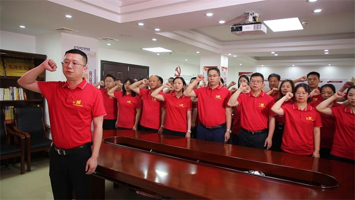 活動伊始,支部書記陳桂軍帶領全體黨員面對鮮紅黨旗,舉起右手,莊嚴宣誓,重溫入黨誓詞,“我志愿加入中國共產(chǎn)黨,擁護黨的綱領......”。黨員們聲音洪亮,情緒激昂,每一句入黨誓詞都在提醒著黨員們,要更加堅定理想信念,堅守行為準則,踐行黨員標準,發(fā)揮黨員先鋒模范作用,用實際行動彰顯黨員本色。