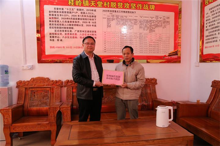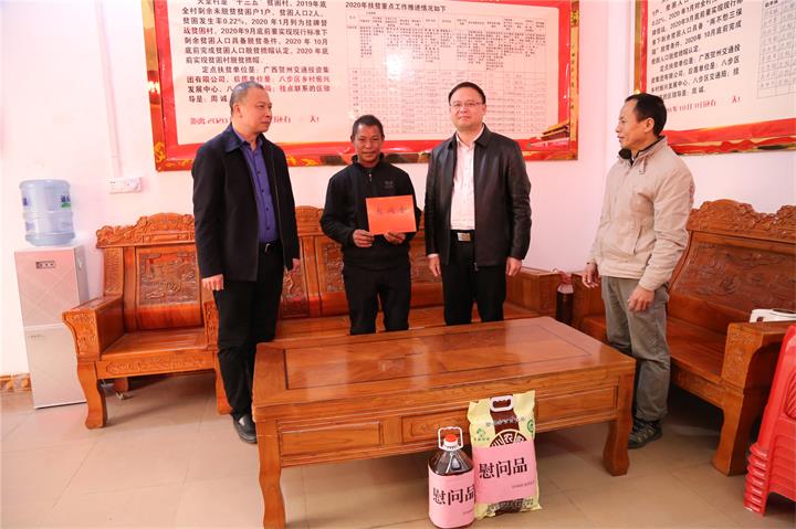 發(fā)布時(shí)間:2022-01-24 作者:圖/鄧永劍 文/劉 美 來(lái)源:本站原創(chuàng) 審核:鄧永劍新春佳節(jié)將至,1月21日,城投集團(tuán)黨委書(shū)記、董事長(zhǎng)黃俊,黨委副書(shū)記、工會(huì)主席梁輝露一行走訪慰問(wèn)了幫扶聯(lián)系村桂嶺鎮(zhèn)天堂村村委干部、駐村工作隊(duì)員以及困難群眾,向他們致以新年的問(wèn)候和美好祝愿,為他們送去溫暖和關(guān)懷。