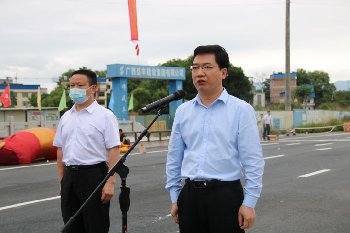 4月29日,永康路橋舉行通車儀式。副市長蔣曉軍,市交通運輸局、國資委、城市管理局、賀州市東融新區(qū)管委、城投集團(tuán)等有關(guān)領(lǐng)導(dǎo)參加通車儀式。副市長蔣曉軍宣布通車。