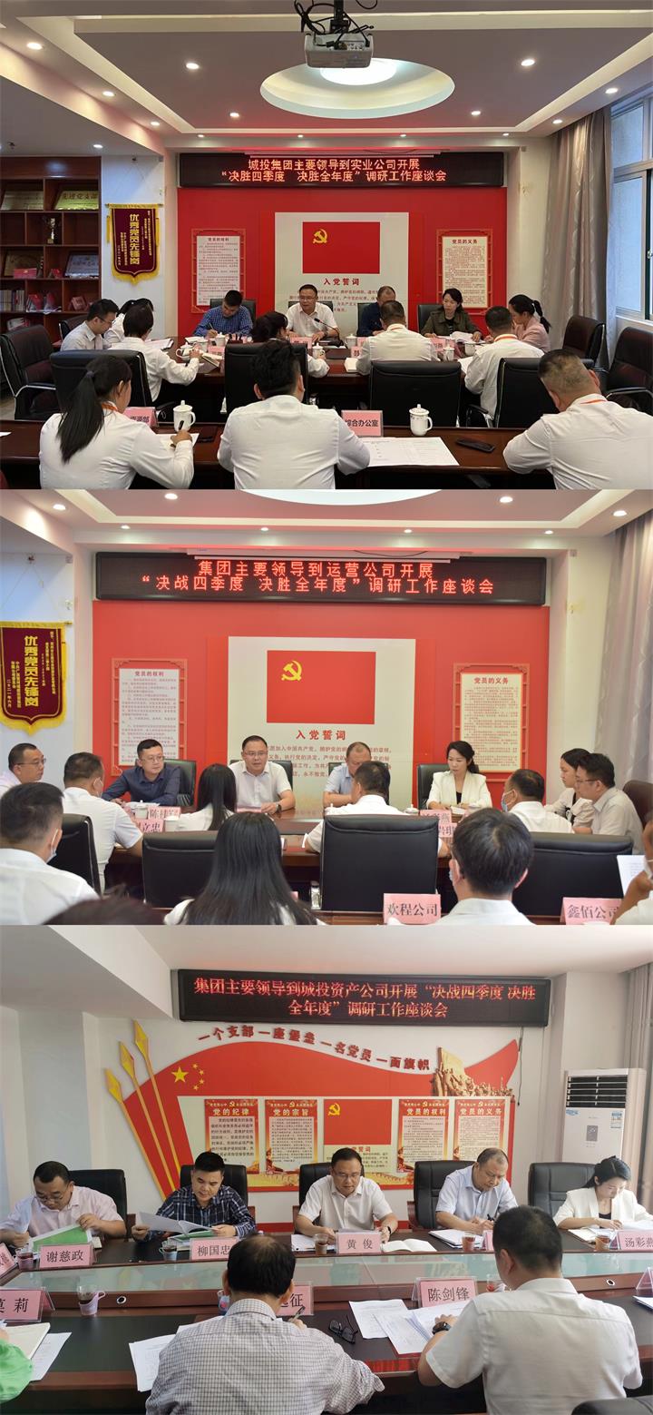 就做好四季度工作,黃俊要求,一要切實(shí)加強(qiáng)班子建設(shè)和干部隊(duì)伍建設(shè)。各子公司領(lǐng)導(dǎo)班子成員之間要在共識(shí)中求團(tuán)結(jié),在信任中求融洽。大事講原則,小事講風(fēng)格,相互尊重、相互諒解,自覺維護(hù)班子的團(tuán)結(jié)。要抓好干部隊(duì)伍建設(shè),提升干事創(chuàng)業(yè)激情,打造一支想干事、能干事、干成事的干部隊(duì)伍。二要全面完成經(jīng)營業(yè)績考核指標(biāo)。經(jīng)營指標(biāo)是檢驗(yàn)工作成效的重要標(biāo)尺,企業(yè)搞得好不好,關(guān)鍵還是看經(jīng)營指標(biāo)。各子公司要以時(shí)時(shí)放不下心的緊迫感,強(qiáng)化經(jīng)營理念,把各項(xiàng)經(jīng)營指標(biāo)抓在手上,壓實(shí)責(zé)任,強(qiáng)化舉措,確保不折不扣完成集團(tuán)下達(dá)的年度經(jīng)營目標(biāo)任務(wù)。三要統(tǒng)籌抓好各項(xiàng)重點(diǎn)工作落實(shí)。各子公司要聚焦工作重點(diǎn),統(tǒng)籌抓好“六大板塊業(yè)務(wù)”拓展、建市20周年項(xiàng)目和重大項(xiàng)目、項(xiàng)目策劃包裝、融資化債、招商引資、資產(chǎn)注入盤活、審計(jì)問題整改等重點(diǎn)工作,確保各項(xiàng)重點(diǎn)工作落細(xì)落實(shí)落到位。四要扎實(shí)推進(jìn)黨建工作和清廉企業(yè)建設(shè)工作。要學(xué)習(xí)好、宣傳好、貫徹好黨的二十大精神,強(qiáng)化思想政治引領(lǐng),推動(dòng)高質(zhì)量發(fā)展取得新成效。要全面完成基層黨建“五基三化”內(nèi)容,持續(xù)增強(qiáng)基層黨組織政治功能和領(lǐng)導(dǎo)力、組織力、執(zhí)行力。要深入開展“城投清風(fēng)”七大專項(xiàng)行動(dòng),著力打造特色清廉品牌,營造政治生態(tài)清朗健康、經(jīng)營管理清廉高效、干部職工清正有為的清廉城投。