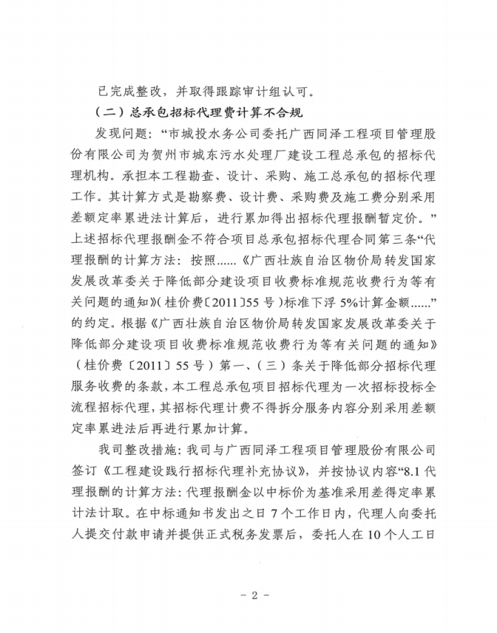 上一篇:關(guān)于賀州市城投公司辦公樓附屬裝修工程結算審計發(fā)現問(wèn)題整改情況的報告