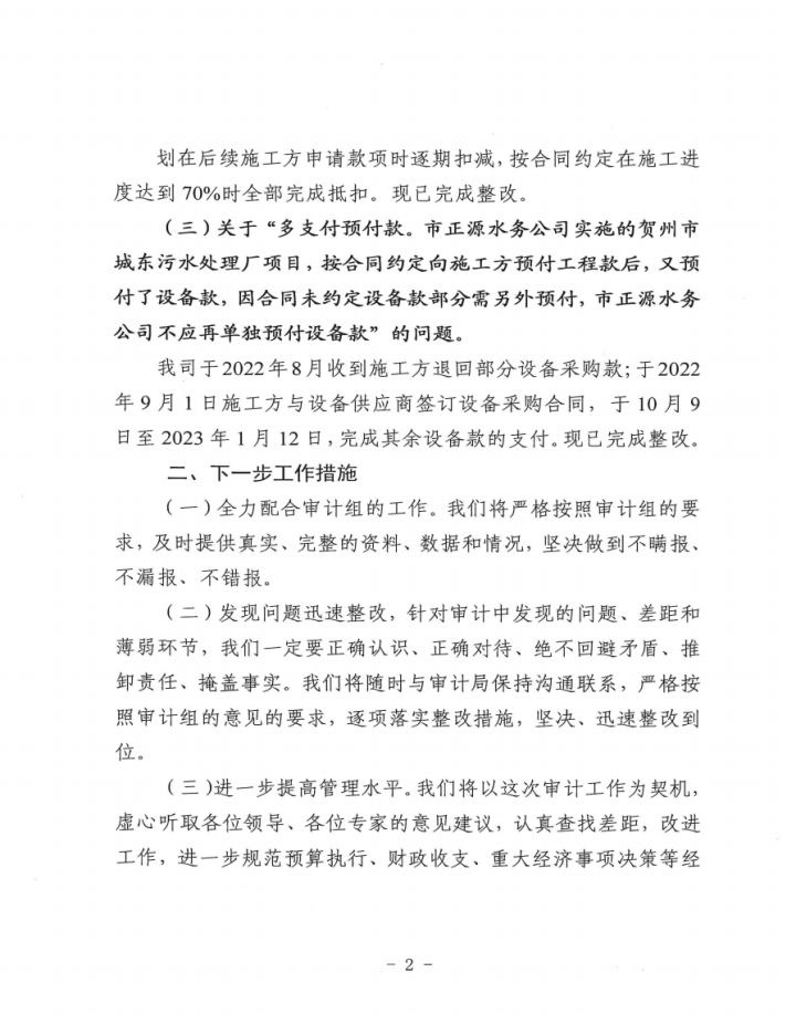上一篇:賀州市城投水務(wù)公司關(guān)于賀州市城東污水處理廠(chǎng)建設工程跟蹤審計發(fā)現問(wèn)題整改情況的報告