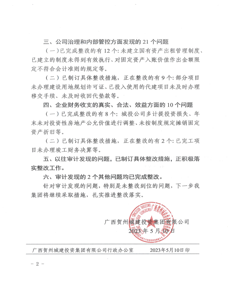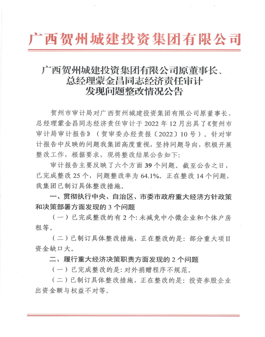 下一篇:關(guān)于賀州高級中學(xué)遷建工程三期項目結算審計發(fā)現問(wèn)題整改情況的報告