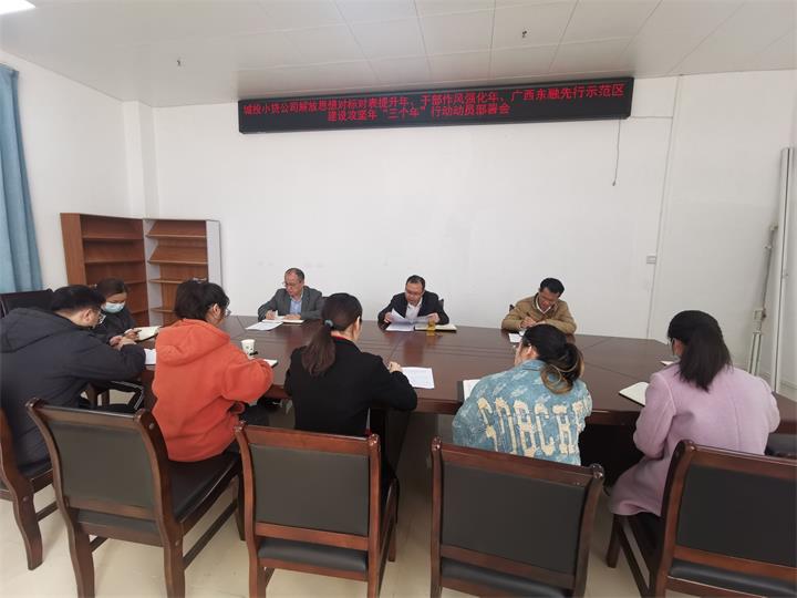 小貸公司召開本公司“三個年”動員部署會,要求公司上下要進(jìn)一步解放思想,強(qiáng)化作風(fēng)建設(shè),重實效、強(qiáng)實干、抓落實,以“三個年”活動為抓手,聚焦信貸業(yè)務(wù)發(fā)展加油干、強(qiáng)化風(fēng)險防控不松勁、改進(jìn)干部作風(fēng)不停步,以作風(fēng)的轉(zhuǎn)變推動公司高質(zhì)量發(fā)展。