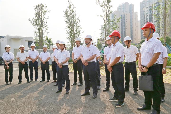 發(fā)布時間:2023-05-20 作者:圖文/吳姍 來源:本站原創(chuàng) 審核:鄧永劍5月19日,城投集團聚焦“三個年”行動,圍繞主責(zé)主業(yè),創(chuàng)新黨委理論學(xué)習(xí)中心組學(xué)習(xí)模式,在項目地召開黨委理論中心組2023年第二次集中學(xué)習(xí)暨項目現(xiàn)場督辦會,將理論學(xué)習(xí)會搬進項目建設(shè)地,打造“開放課堂”,既看“書面”更看“地面”,既學(xué)“理論”更重“實踐”,通過觀摩學(xué)習(xí),現(xiàn)場督辦鞭策,倒逼項目建設(shè)。