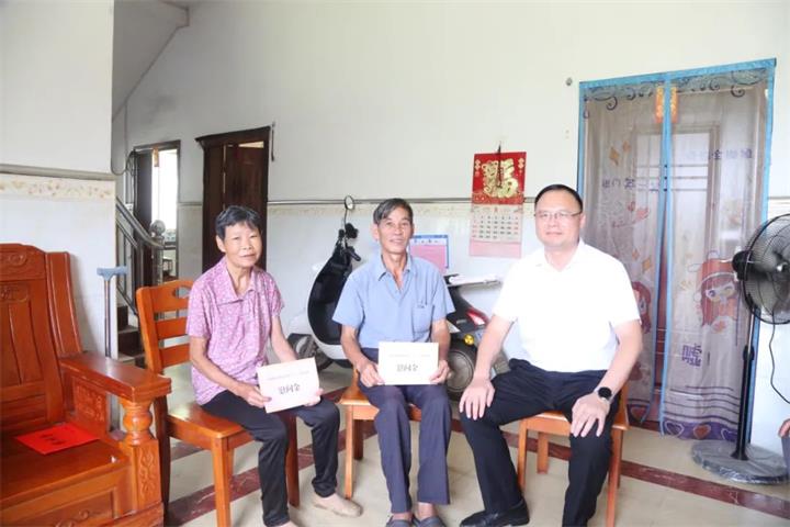 韋升安、黃俊一行分別走訪慰問了老黨員和困難黨員代表,詳細(xì)了解他們的身體和生活情況,并為他們送上節(jié)日慰問金和慰問品。韋升安與黨員們促膝而坐,親切拉起家常,關(guān)切詢問老人近期的健康狀況、家庭及子女就業(yè)情況,悉心叮囑他們多注意身體,有困難及時(shí)向組織反映,同時(shí)鼓勵(lì)他們圍繞村里的熱點(diǎn)難點(diǎn)問題,積極建言獻(xiàn)策,助力鄉(xiāng)村振興。