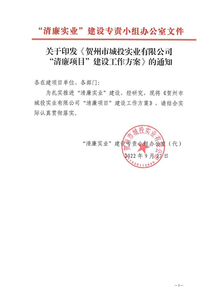 賀州城投集團實業(yè)公司“清廉實業(yè)”建設(shè)專責小組辦公室