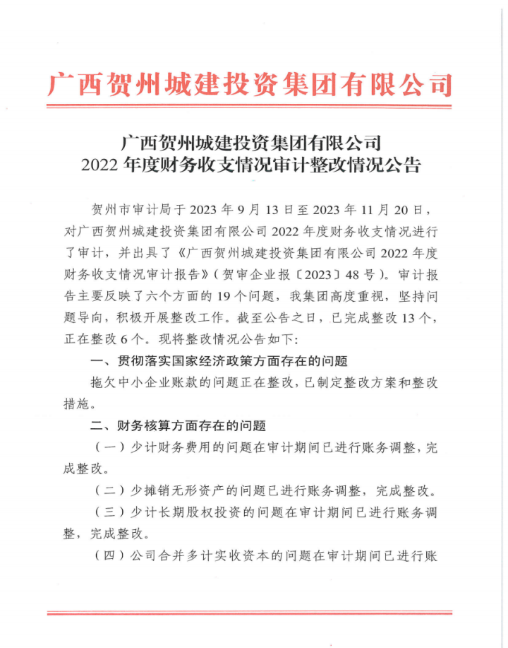 下一篇:賀州市城市品質(zhì)提升改造工程財務(wù)收支及項目執行情況審計整改情況公告