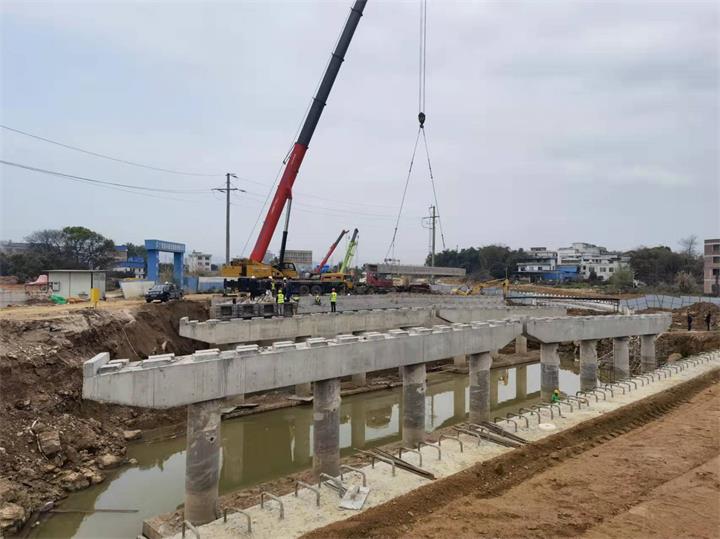 生態(tài)新城永康路育才河橋開展架梁施工2022-03-10
